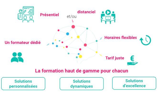 Un accompagnement avec un formateur « rien que pour VOUS » tout au long de votre parcours d’apprentissage.